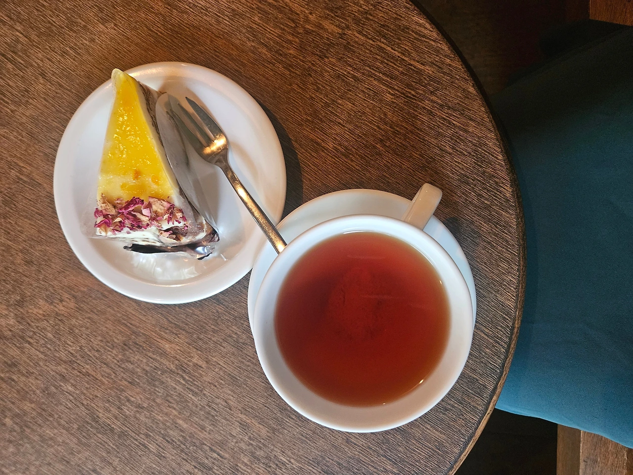 녹음을 마치고 연락이 닿은 신랑이 아이들 저녁을 차려 먹인다고 해서, 오랜만에 저녁 시간에 서두르지 않고 근처 카페로 향했다. 뜨거웠던 여름, 고생한 나를 위해 '레드 넥타'라고 이름을 붙인 루이보스티와 오렌지 당근케이크를 주문했다.