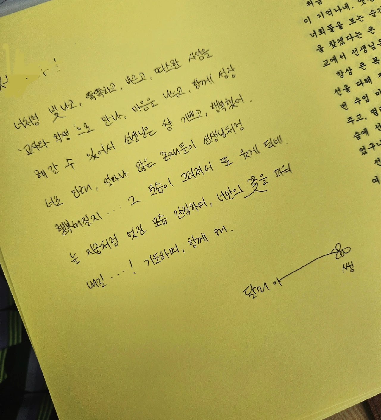 내가 전하고 싶었던 진심과 사랑이 아이들의 삶에 따스한 빛처럼 스며들기를 소망한다. 이 마음이 때론 험난하기도, 고난하기도 한 삶의 여정 속에서, 포기하지 않고 나아갈 수 있는 힘이 되기를 바란다. 나는 언제나 같은 자리에서, 같은 마음으로, 내가 만난 모든 아이들이 행복하기를 기도할 뿐이다.