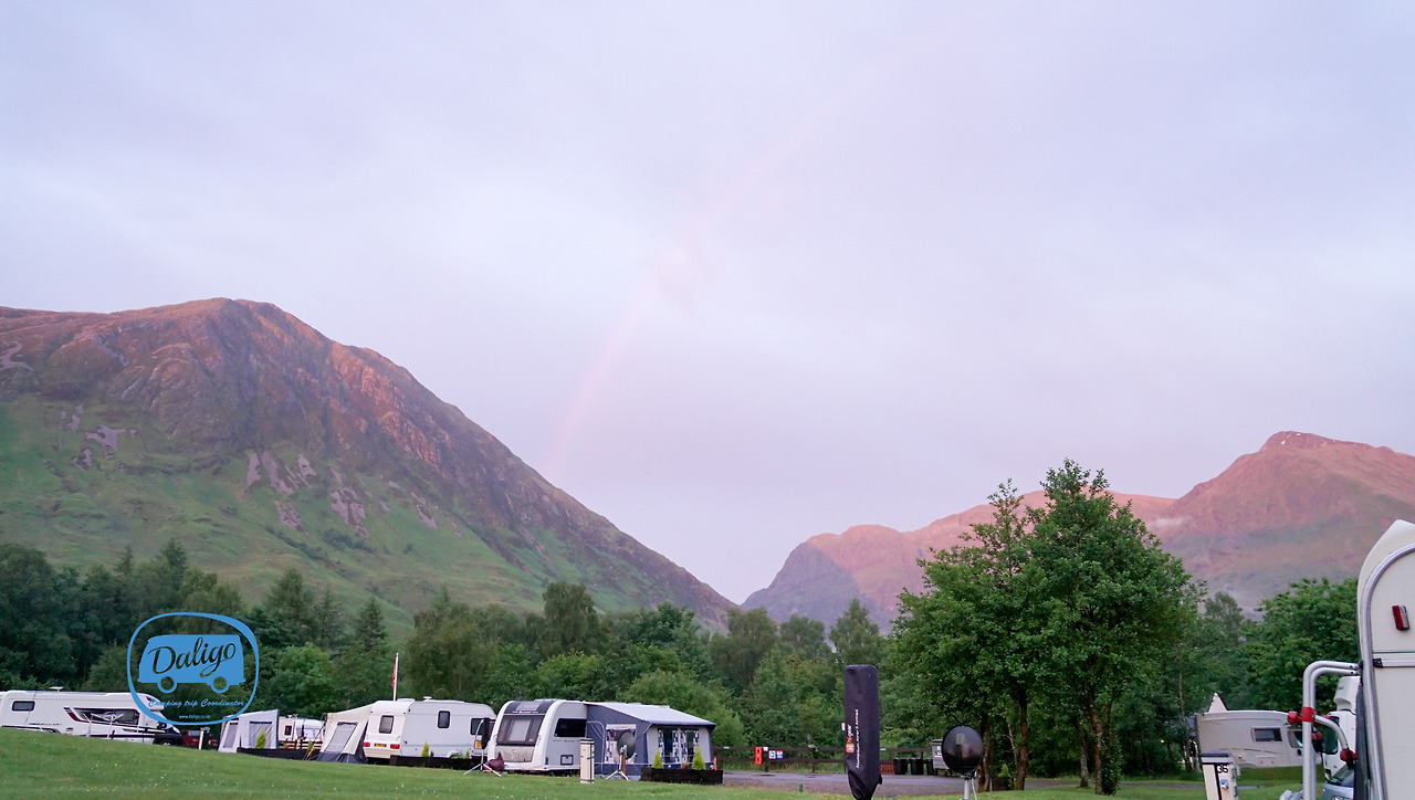 글렌코가 올려다 보이는 캠핑장으로 사진가들이 선호하는 캠핑장 1위에 선택되기도 한 하이랜드의 입구에 위치한 캠핑장이다. 조금은 불친절하게 들리는 스코티시 엑센트의 주인장의 안내를 받으며 캠핑장 중심부에 자리를 폈다.