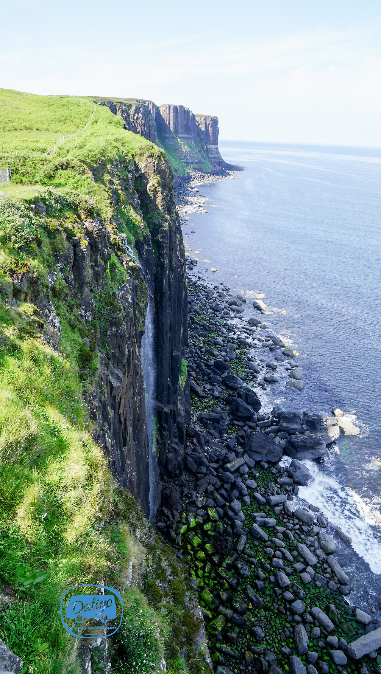 얼마 떨어져 있지 않은곳, 바다를 향해 떨어지는 Mealt falls. 바람이 강해 폭포물이 얼굴을 향해 올라온다.