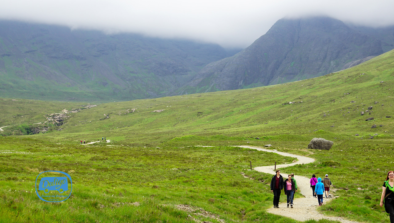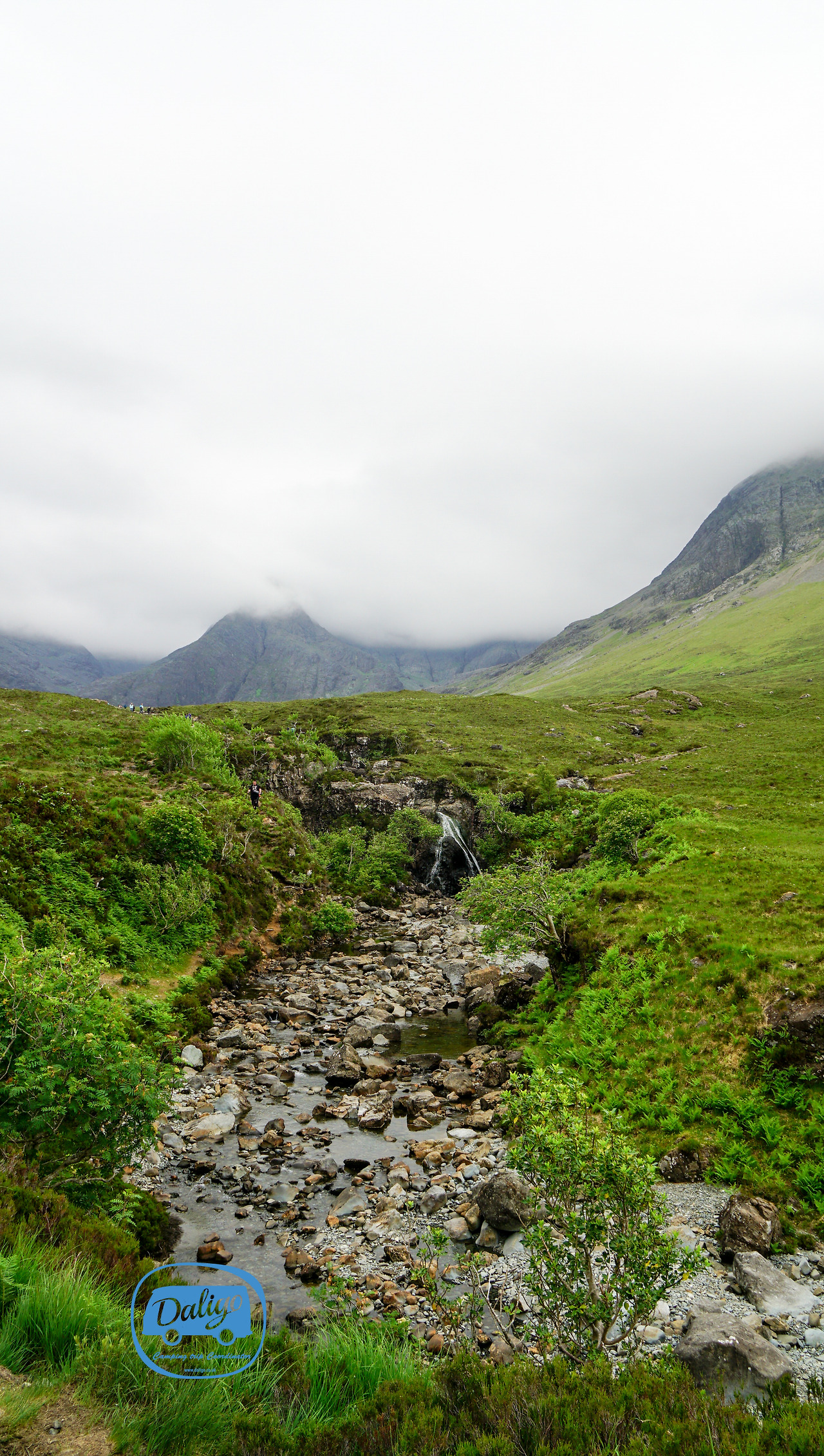 스카이섬에서의 마지막 하이킹코스인 Fairy Pools 에 도착했다. Fairy Pools 는 Glen Brittle 에 위치한 곳으로 수십개의 폭포들이 넓은 평야를 가로질러 내려오는 계곡으로 Wild Swimming 을 위해 전세계의 젊은이들이 찾는 곳이다.
