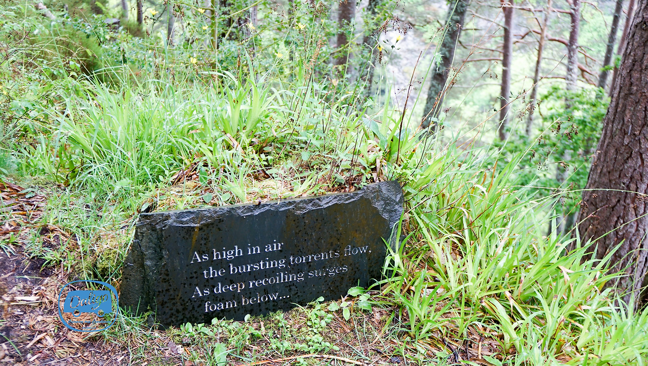 폭포 주변으로 길이 아주 잘 정돈되어 있고 길의 코너마다 Robert Burn의 시의 한 구절을 적어놓은 섬세함! 인문학의 강자인 영국답다!