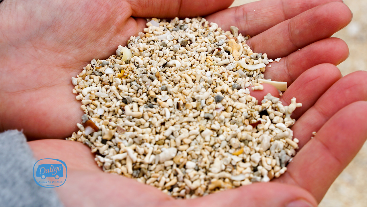 주차장에서 20분을 해안길을 따라가니 검은 돌로 가득한 다른곳과 달리 하얀 조개조각들로 가득한 바닷가를 만났다. 수천만년동안 조개들이 조류에 밀려 만들어진 모래같은 해변이 감탄사를 자아낸다.