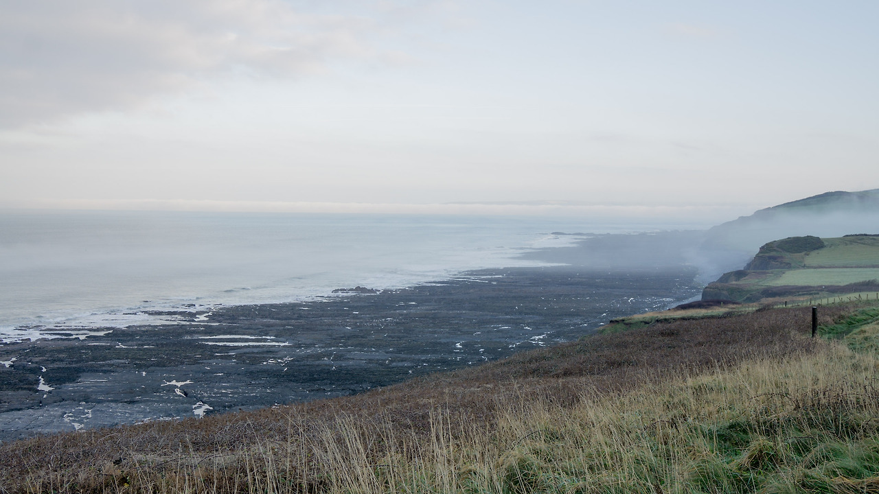 끝이 보이지 않는 바다! 차가운 대서양의 파도가 검은 암석을 때리고…
