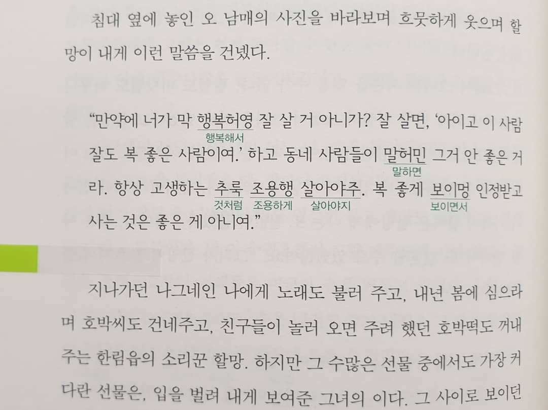 저는 이 책을 읽고 나서야 깊이 생각해 본 적 없었던 외할머니의 라이프스토리가 궁금해졌습니다. 할머니가 4.3의 피해자였다는 사실도 할머니가 돌아가신 후에야 알게 되었습니다. 너무 늦었지만, 이제라도 엄마에게 물어보며 입에서 입으로 전해지는 할머니의 이야기를 가만히 들어봅니다. 그러나 할머니의 목소리와 말투와 표정이 잘 기억나지 않습니다.