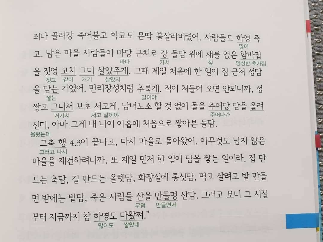 책 속에는 일제강점기와 4.3, 그리고 한국 전쟁까지. 어마어마한 비극을 연달아 겪은 보통 사람이 그것을 어떻게 극복하고 다시 삶을 꾸리며 살아왔는지 할망들의 말로 기록되어 있습니다. 슬프지만은 않습니다. 재밌고 신기하고 정겹고 담담하기도 합니다. 할머니가 아랫목에서 들려주는 옛날이야기처럼 말이죠. 살다보니 살아졌다는 할망들의 이야기를 듣다 보면, 절망도 아픔도 슬픔도 외로움도 도란도란 나누다 보면, 나도 어떻게든 살아갈 수 있을 것 같은 희망을 느낍니다.