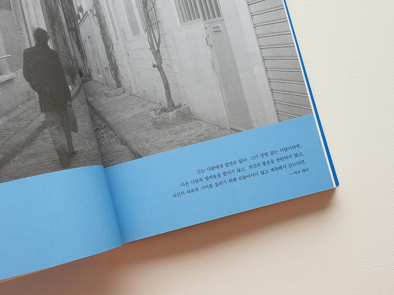 걷는 사람에게 절망은 없다. 그가 정말 걷는 사람이라면. 다른 사람과 말싸움을 벌이지 않고, 자신의 불운을 한탄하지 않고, 자신의 세속적 가치를 올리기 위해 뒤돌아서지 않고 계속해서 걷는다면.