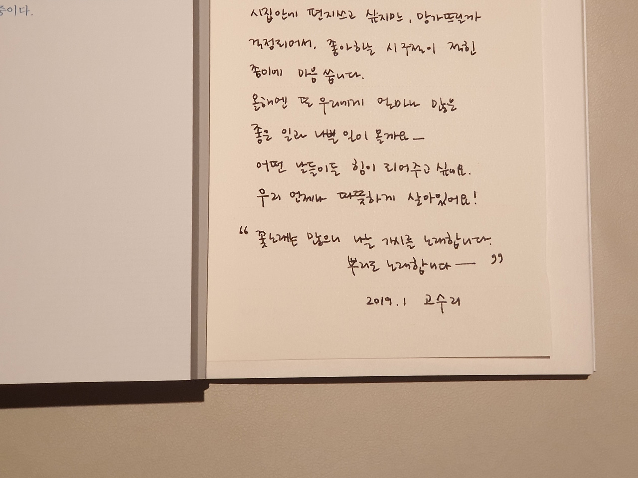 “그동안 기꺼이 마음 써주셔서 감사해요. 함께여서 행복했습니다. 우리 오래오래 쓰는 사람으로 살아요.”