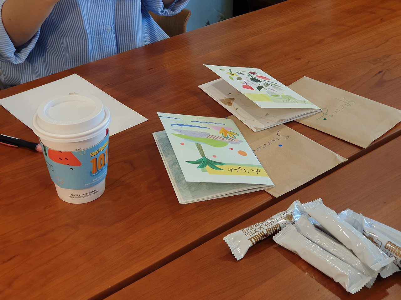 숲 속을 걸으며 책 이야기를 나누는 사람들처럼, 느긋하고 자유롭게 산책하듯 책 읽기. 한 달간의 독서모임이 끝났고, 우리에겐 세 권의 책과 좋은 사람들과 나만의 이야기가 남게 되었다. 혜련 이플 메아리 별 쪼쪼 민주. 롤링페이퍼에 쓴 작고 귀여운 마음들 잊지 않아요. 나의 첫 독서모임 멤버들 고맙습니다!