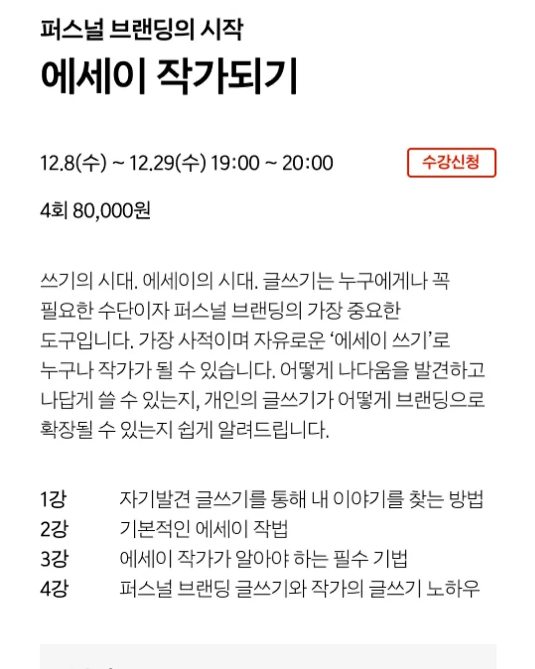 12.8(수)-12.29(수) 19:00-20:00 (4회)