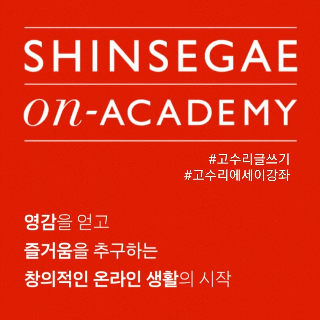 12월에 신세계 아카데미와 특급 에세이 강좌를 준비했어요. 신세계 온 아카데미에서 지방이나 해외에 계신 분들도 참여할 수 있도록 온라인 글쓰기 강좌를 진행합니다. 작가 생활과 에세이 쓰기의 알찬 노하우 꾹꾹 눌러 담아 4회차 찐한 강의와 단기 특강을 준비했답니다. 두 강좌 모두 다른 내용으로 구성되어 있어요. 모두 들어셔도 됩니다^^