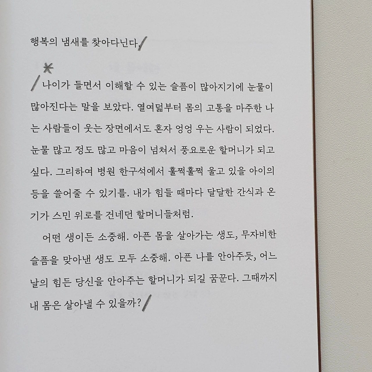2021년 2월 24일에 희우가 보낸 '새살이 돋아난 자리(189p)'라는 글에 답장으로 보냈던 편지를, 이제 희우의 책을 읽고 같은 마음으로 살아왔을 독자들에게도 보내주고 싶다. 나는 과연 할머니가 될 수 있을까? 묻던 희우에게 대답한다. 우리는 할머니가 될 수 있어. 나랑 같이 글 쓰는 할머니가 됩시다.
