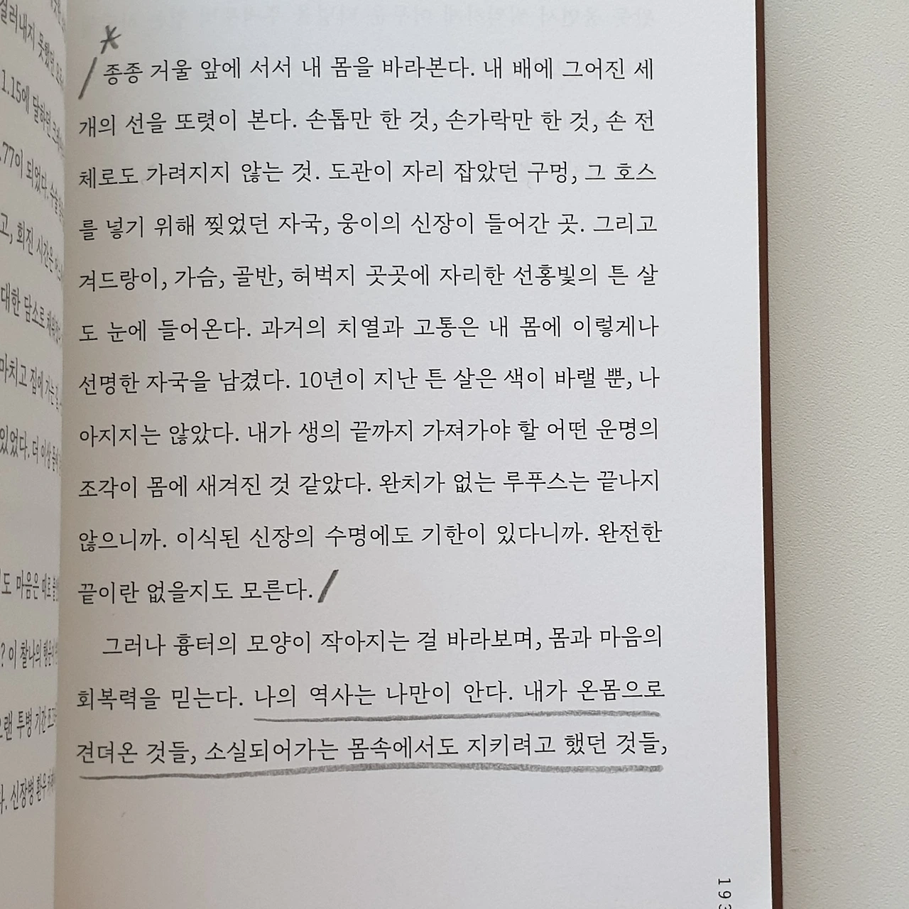 (...) 희우를 오래 지켜봐 왔고, 먼저 글을 쓰고 있는 작가로서 희우에게 해주고 싶은 이야기 있어요. 긴긴 시간 병과 고통과 함께 살다가, 다시 태어난 희우에게. 조급해하지 말라고 말해주고 싶어요. 희우는 되고 싶은 것도 하고 싶은 것도 많겠지요. 회복하면서도 동시에 성장하고 싶어서 지금 초조하겠지요.