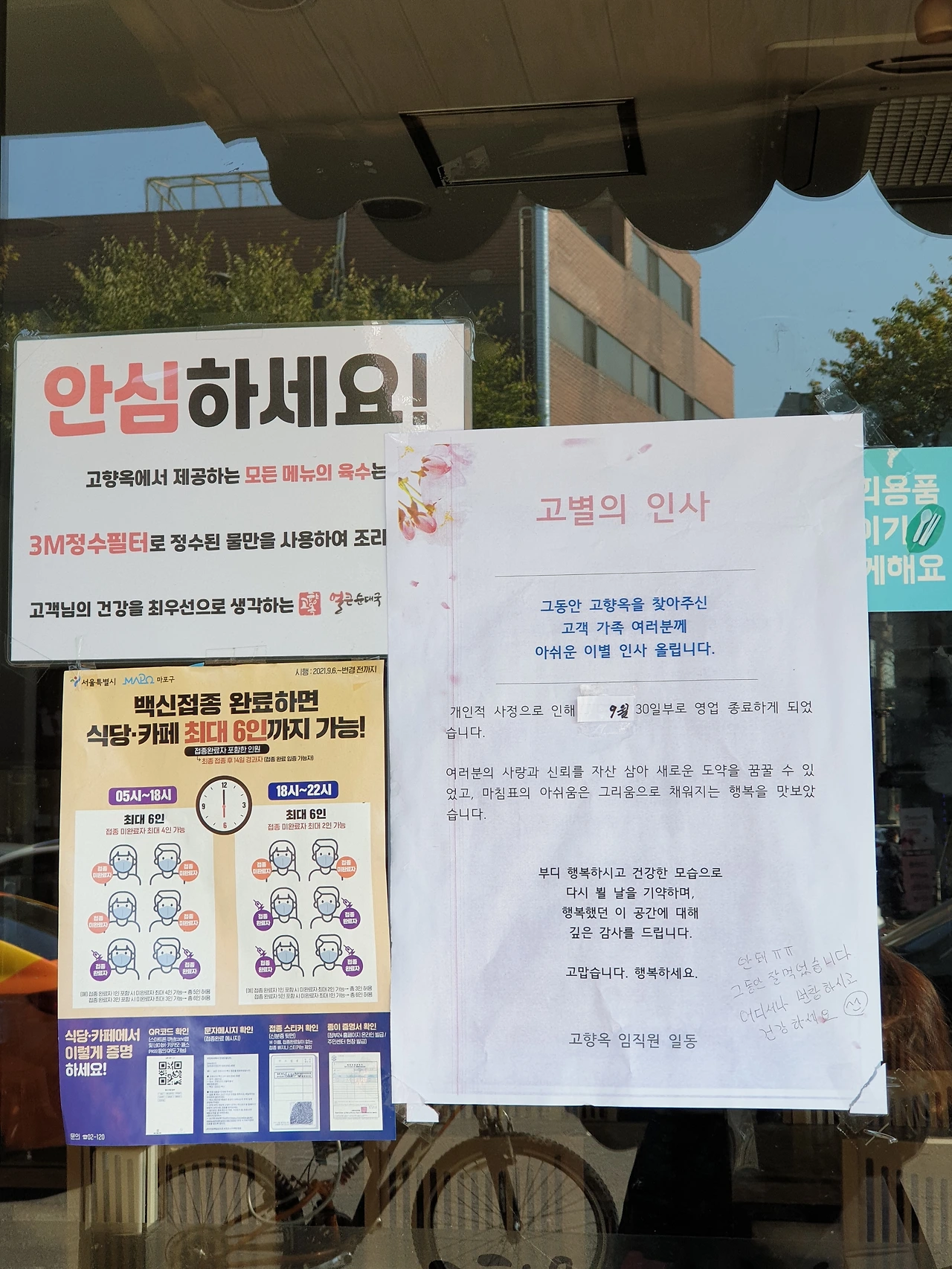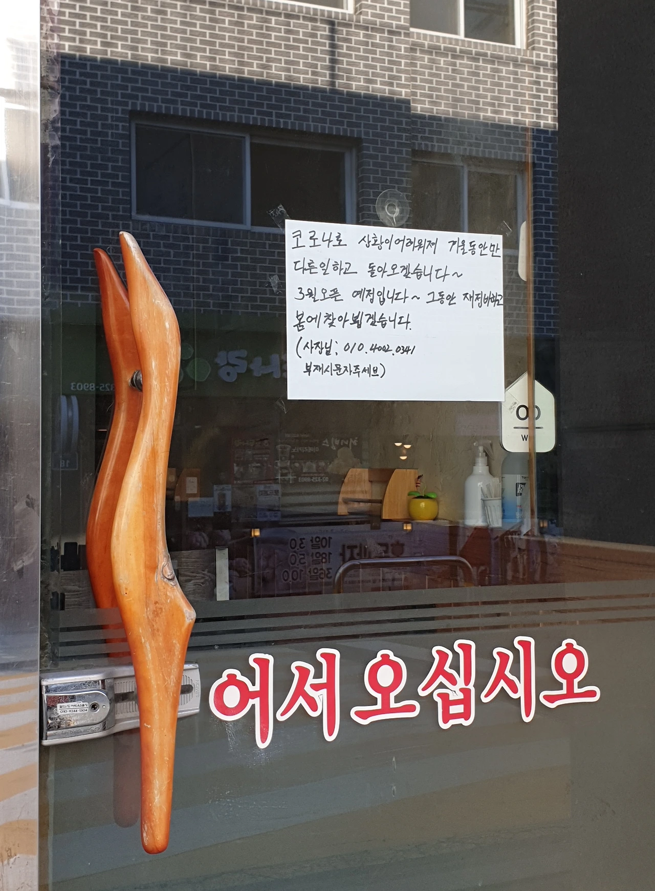 “코로나로 상황이 어려워져 겨울 동안만 다른 일 하고 돌아오겠습니다. 3월 오픈 예정입니다. 그동안 재정비하고 봄에 찾아뵙겠습니다.”