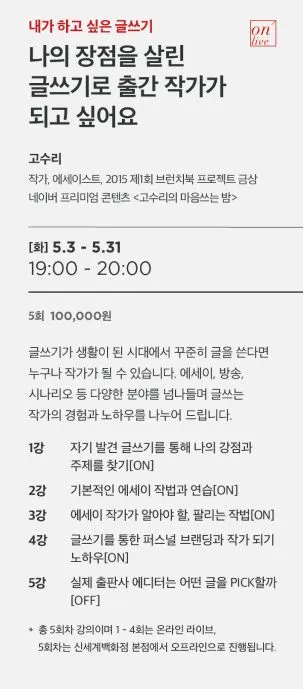 [5회 차 강좌] 나의 장점을 살린 글쓰기로 출간 작가가 되고 싶어요