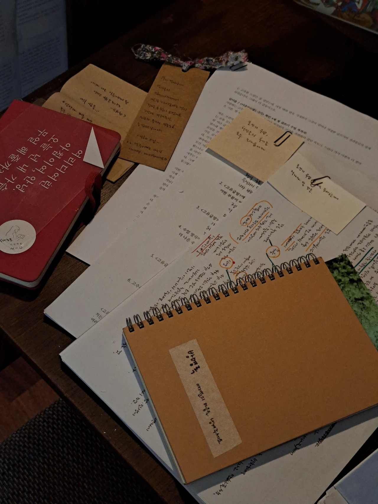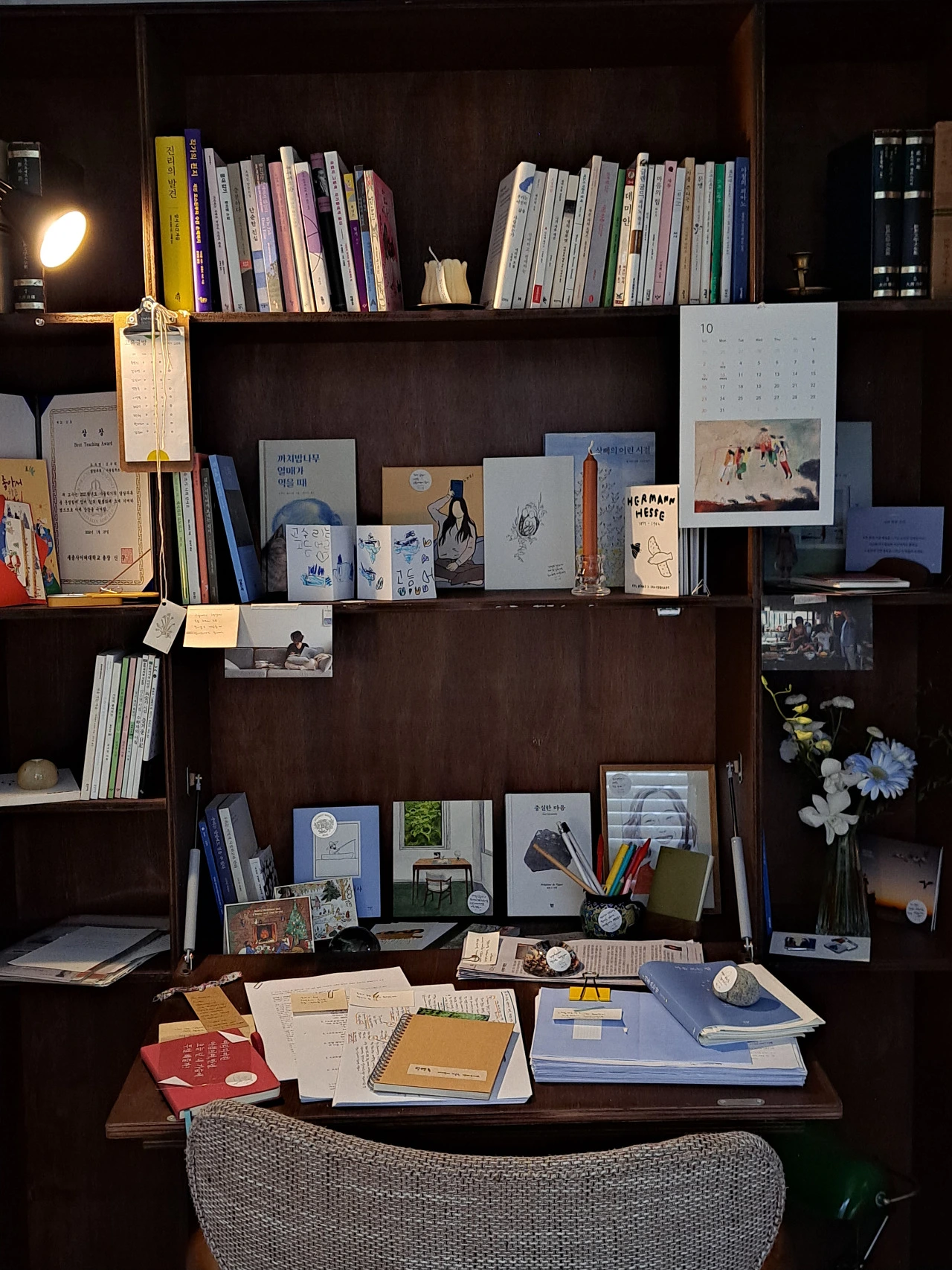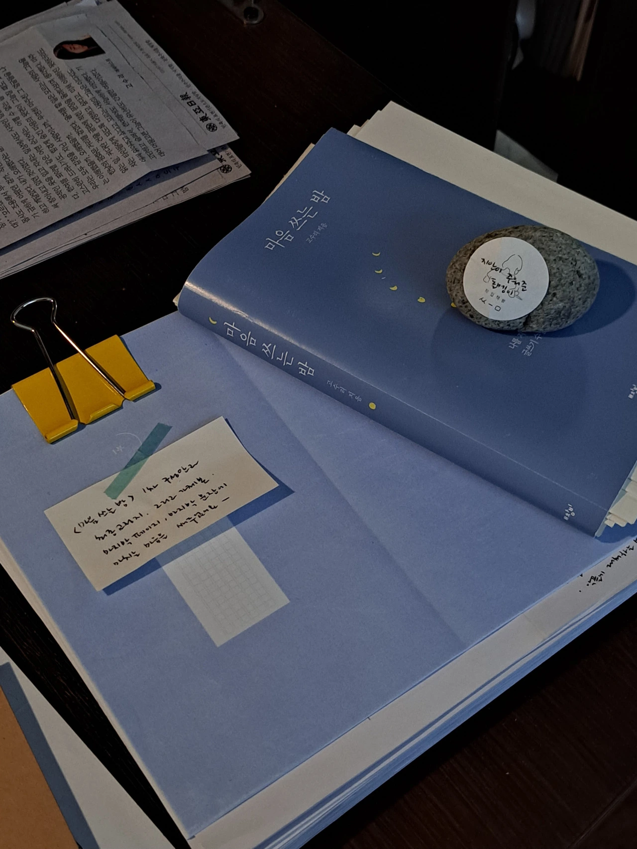 10월에는 작업책방씀에 제 책상을 옮겨둡니다. 아침 리추얼마다 읽었던 책들, 글쓰기와 글쓰기 수업 작업들, 동료와 독자들과 나눈 편지들, <마음 쓰는 밤> 교정지와 가제본 등. 그간 읽고 쓰고 나눈 흔적들을 옮겨둡니다.