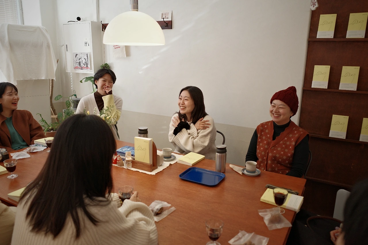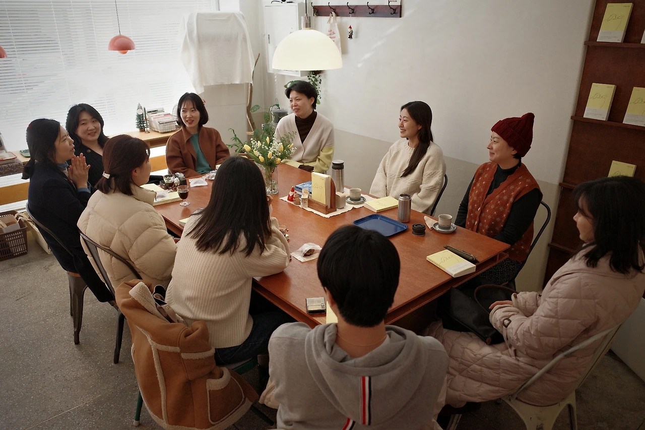 조용한 주택가에 덩그러니 책방이 있었다. 김 서린 유리문을 열자, 와락 훈기가 달려들어 껴안아 주었다. 책장 전면에 내 책들이 전시되어 있고 테이블에 독자들이 앉아 있었다. 책방지기가 웃으며 나를 반겼다. “여기 앉으세요.”