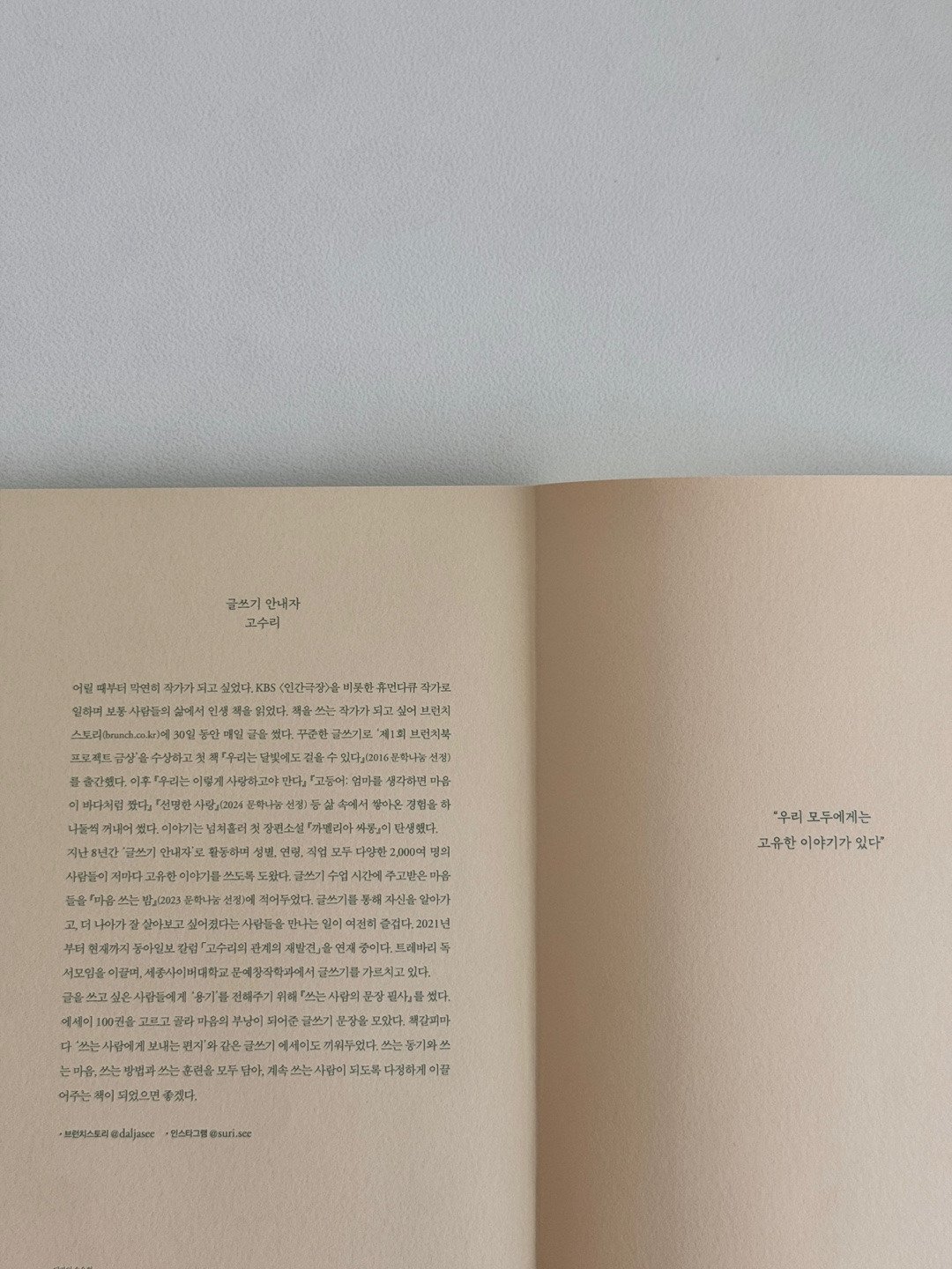이 책을 열어볼 당신의 얼굴을 상상합니다. 당신의 손에 제 손을 맞잡아보려고요. 천천히 고요히 저를 따라 걸어요. 우리 같이 글쓰기의 세계를 산책할까요? 글을 쓰려는 당신에게 이 책이 부낭이 되어주길 바랍니다.