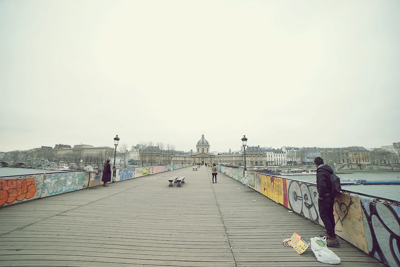 우리가 여행하는 동안 파리에는 해가 뜨지 않았다. 차가운 겨울바람만 세차게 불었다. 대테러 경보가 내린 비수기 여행지에는 심하다 싶을 정도로 사람들이 없었다. 앙상한 나뭇가지와 오래된 건물들, 꽁꽁 걸어 잠근 상가들과 무뚝뚝한 현지인들. 겨울 파리는 그랬다. 우리는 칼바람을 맞으면서 탁한 강물이 넘실거리는 세느강변을 따라 걸었다. 만지면 바스락 소리가 날 것 같은, 춥고 건조한 풍경이었다.