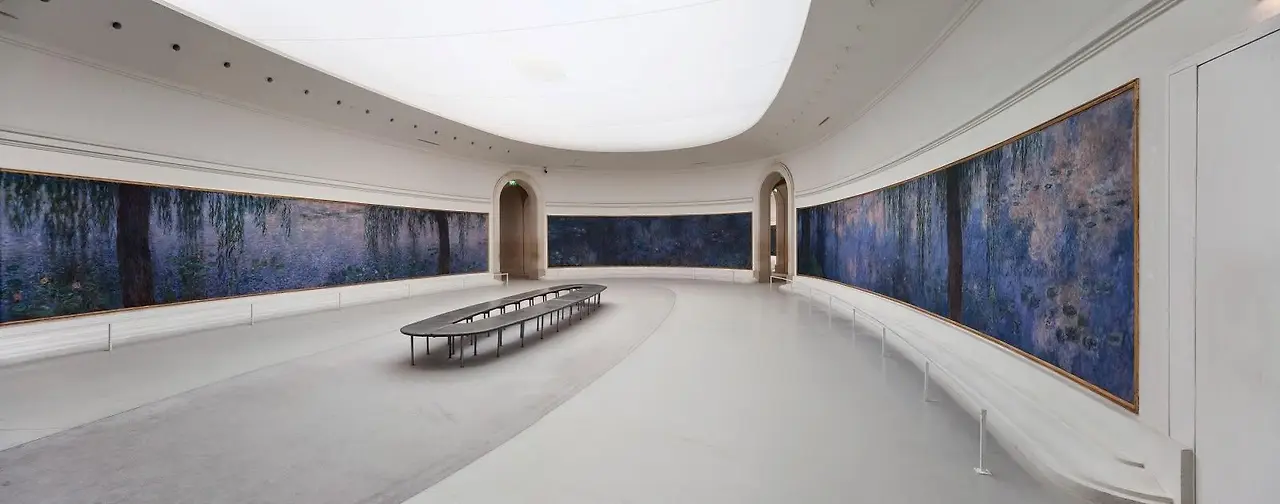 오랑주리 미술관. 파리 여행을 통틀어 가장 행복했던 공간이었다. 이곳에 모네의 작품 <수련> 연작이 있었다. 오랑주리 미술관에도 사람들이 거의 없었다. 덕분에 대기할 필요도 없이 우리는 바로 미술관에 입장했다. 미술관에 들어서자마자 타원형 전시실 사방이 모네의 <수련>으로 가득 차 있었다.