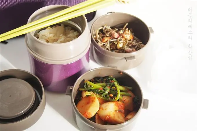 색색의 도시락에는 달걀말이, 분홍 소시지, 멸치볶음, 장조림, 김치 같은 반찬들이 옹기종기 담겨 있었다. 보온도시락을 싸 온 친구도 있었다. 제일 아래 칸에는 된장국이 아직도 따뜻했다.