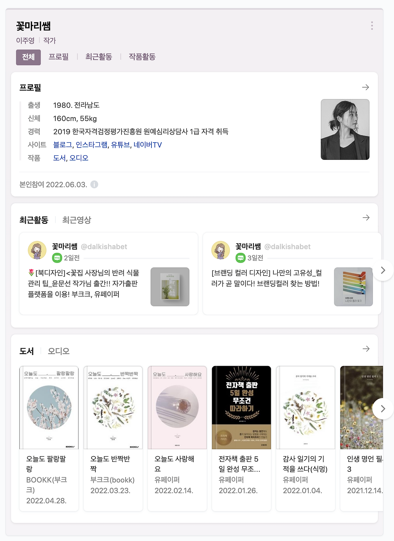 나를 알릴 수 있는 채널에는 네이버 인물 등록만큼 좋은 이력서는 없다고 생각한다. 왜냐하면 내가 활동하는 채널과 활동을 한눈에 볼 수 있기 때문이다.