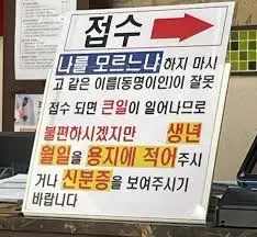 가끔은 나이가 들면 어린애가 된다는 말에 연민을 보내야 할 때도 있다. "나를 모르느냐 하지 마시고 동명이인이 있으면 큰일이 나니 신분증을 제시해 달라"는 어느 주민센터의 사진 앞에서 연방 고개를 끄덕였다. 내가 본인을 먼저 알아보면 금세 얼굴이 환해지시고, 잠시 망설이다 "그런데 이름이?" 하면 '그럼 그렇지' 낙담하는 얼굴이 표가 난다. 낙타에서 사자, 그리고 어린아이가 되는 것이 초인이라는 니체의 철학을 떠올리게 된달까. 서운해만 하시면 좋을 텐데 마약류 의약품 때문에 신분증이라도 받을라치면 이제 난리가 나는 것이다. "나를 모르느냐"면서. 우리도 같은 표지판을 하나 세워야 하나 싶을 정도다. 초인은 아니 되셔도 좋으니 신분증이 필요한 건 내가 아니라 당신들의 정부라는 사실이나 알아주셨으면.