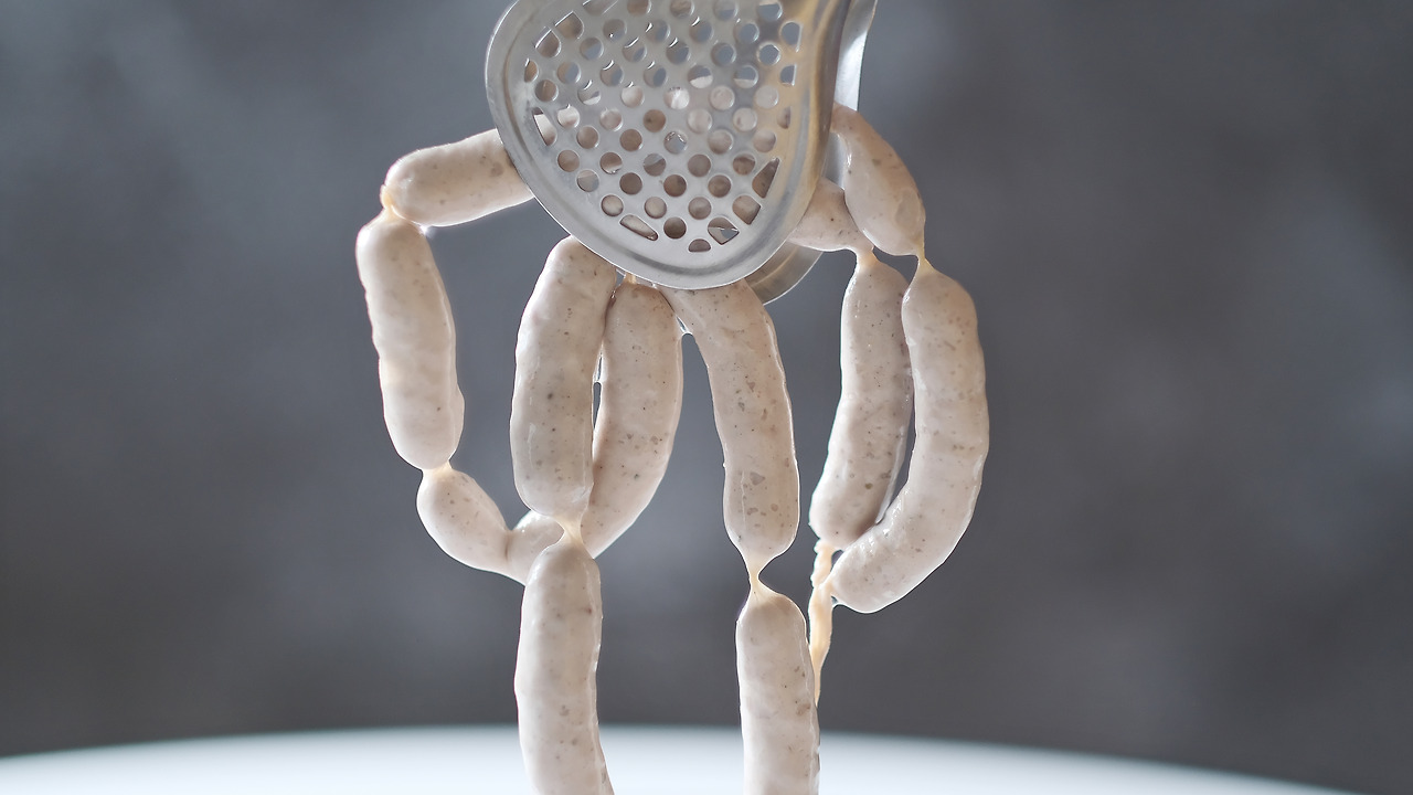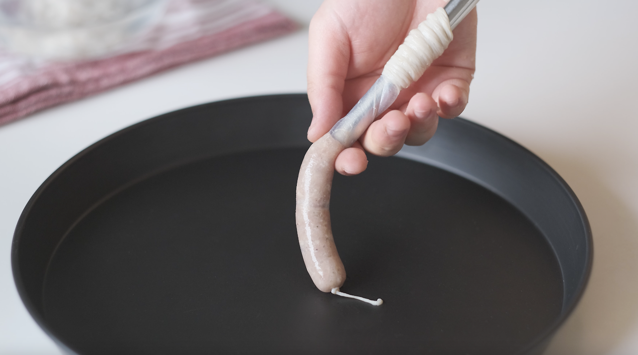 고기를 갈아 향신료를 뿌려 콜라겐 케이싱이나 천연 케이싱에 집어넣은 뒤, 낮은 온도의 물에서 익히거나 훈연으로 구워주면 소시지가 완성됩니다.