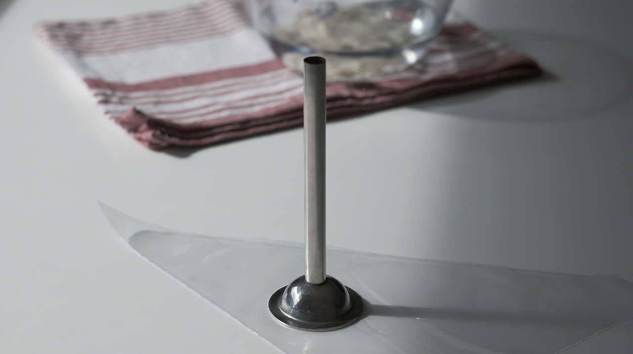 돈장이 아닌 20mm 크기의 가는 양장입니다. 천연케이싱이 켜켜이 쌓일 만큼 굵기가 일정하게 긴 관을 가진 깔때기와 짤주머니를 사용했습니다.