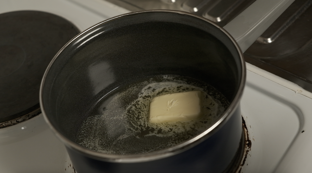 버터 25g를 녹인 뒤 밀가루 1T(13g)를 넣고 약불에서 볶아줍니다.