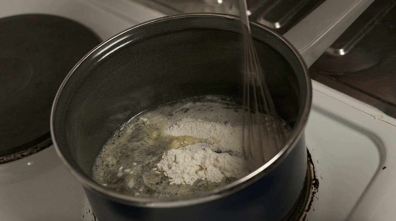 / 버터와 밀가루를 동량 넣고 볶는 것이 일반적이지만 버터 양이 작아 밀가루 양을 더 줄여 볶았습니다.