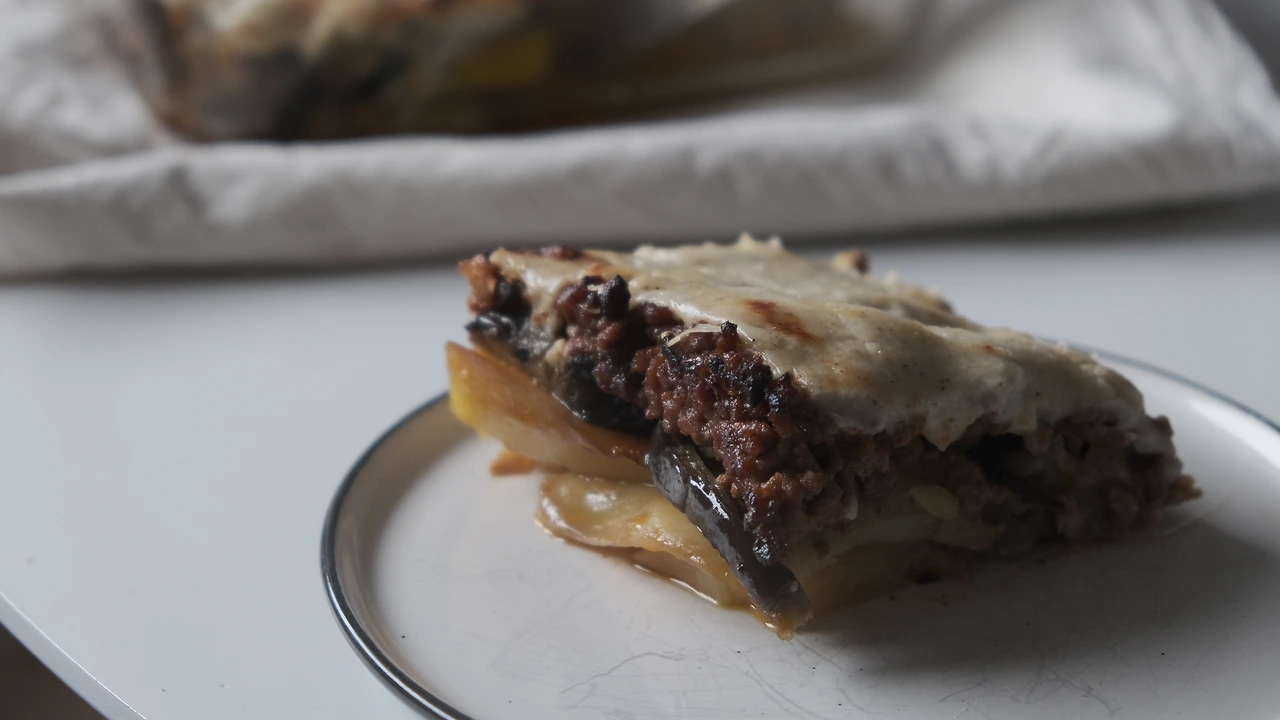 그리스식 무사카에는 고기 소스와 베샤멜소스에 달걀이 들어가 부드러운 맛이 특징입니다. 하지만 제 입맛에는 달걀을 넣지 않는 편이 나아서 레시피에 달걀을 생략했습니다. 또 고기 소스에 조미료와 양념을 더했습니다.