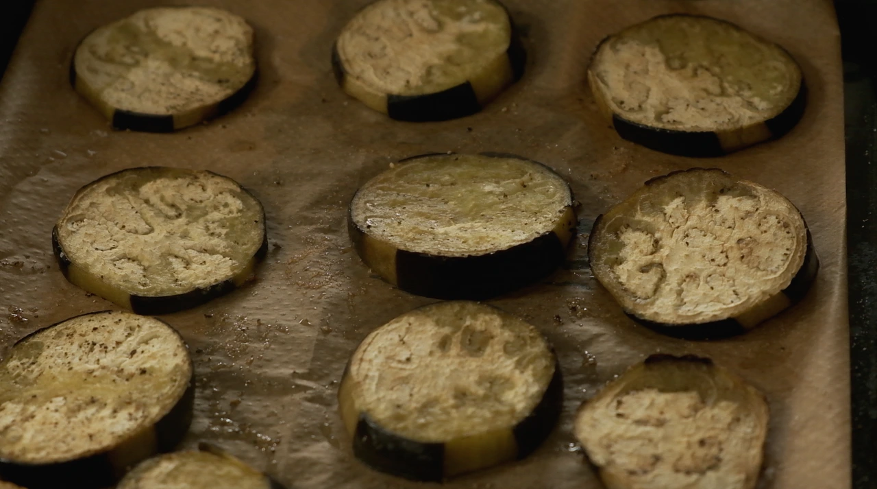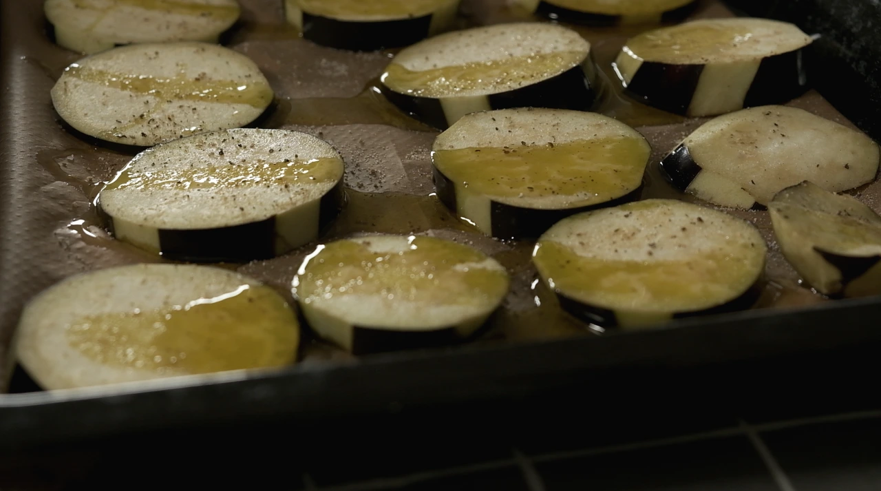 칼집 낸 뒤 자른 가지에 소금, 후추, 올리브유를 뿌린 뒤 200도 오븐에서 30분 간 구워 수분을 날려줍니다.