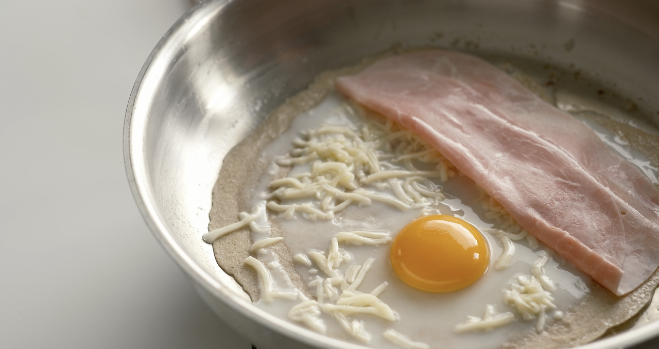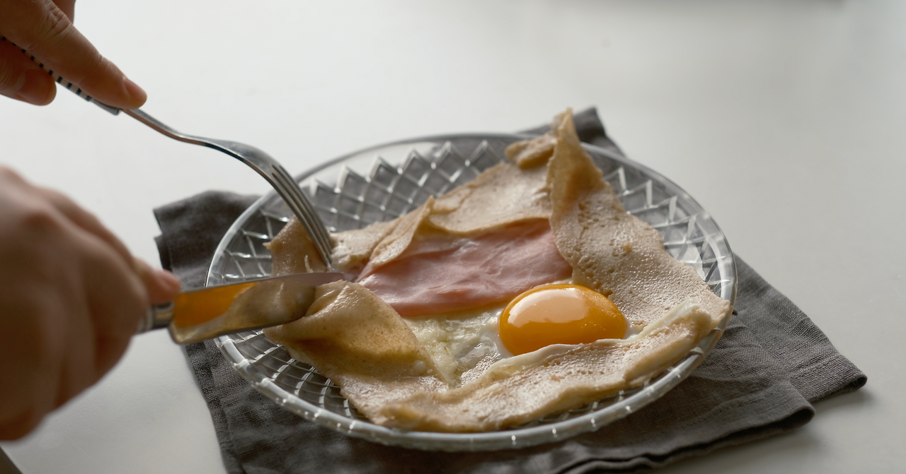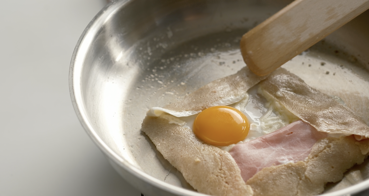 이번에는 메밀반죽에 달걀, 슬라이스 햄, 에멘탈 치즈가 들어가는 프랑스 노르망디&브르타뉴식 메밀크레페를 만들어보겠습니다.