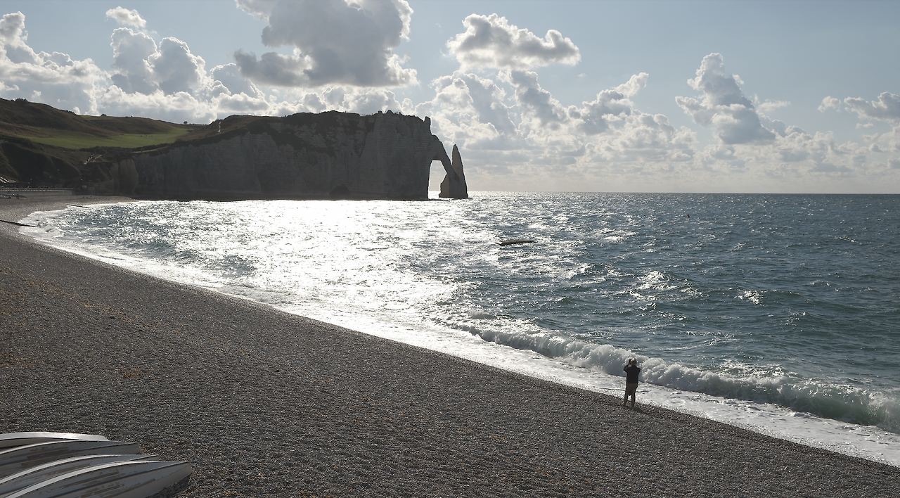 노르망디 에트르타 절벽에 몰아치는 바람 그리고 그 주위를 머무르다 사라지기를 반복하는 구름. 30여 분의 짧은 시간 동안 맑았다 흐리기를 수차례 반복합니다. 인생에서 주변에 의한 일희일비가 얼마나 덧없는지 또 한 번 깨닫습니다. 모네가 사랑했던 이 절벽을 뒤로하고 주린 배를 채우러 크레페가게로 향합니다.