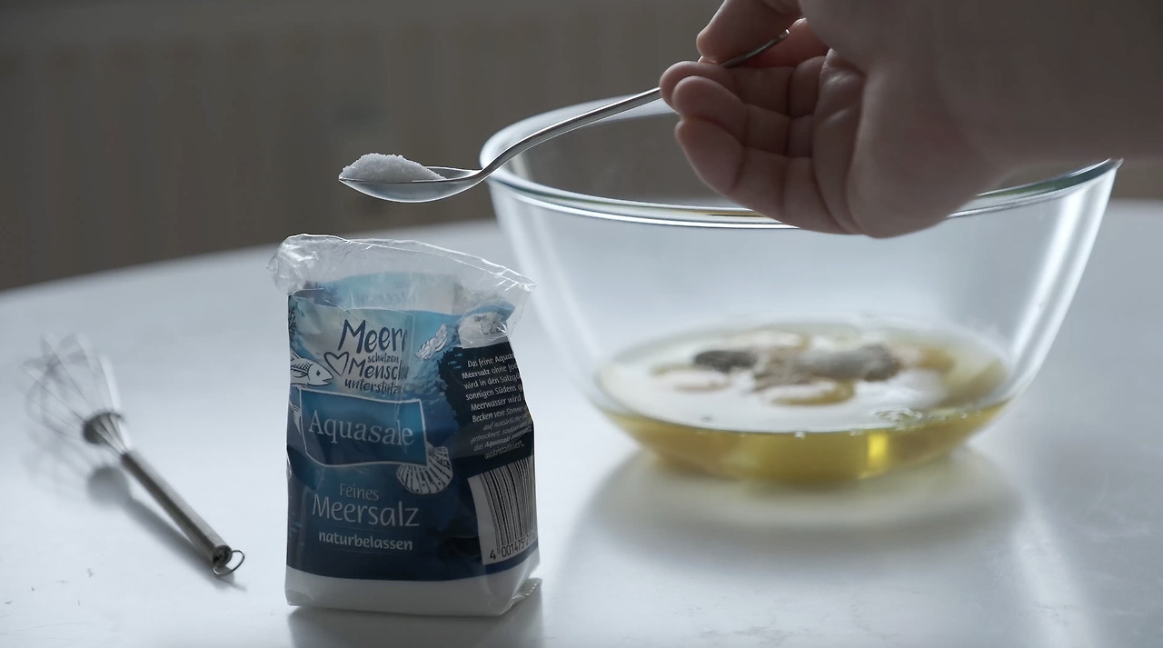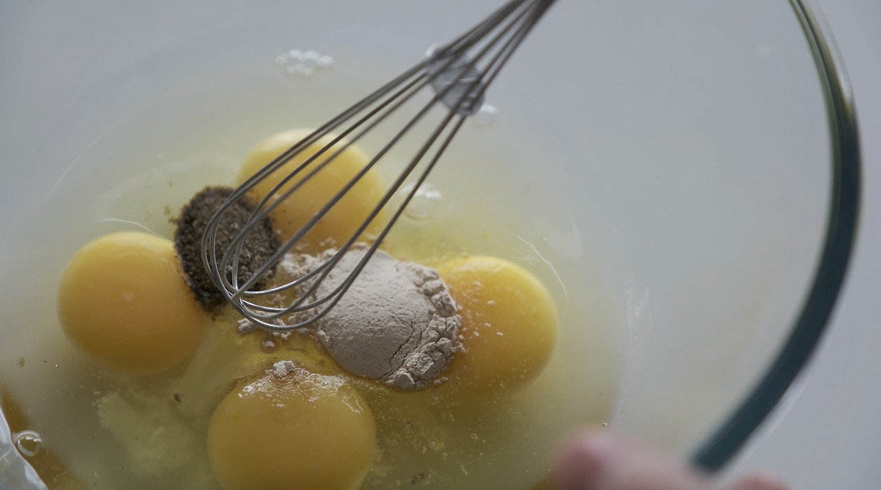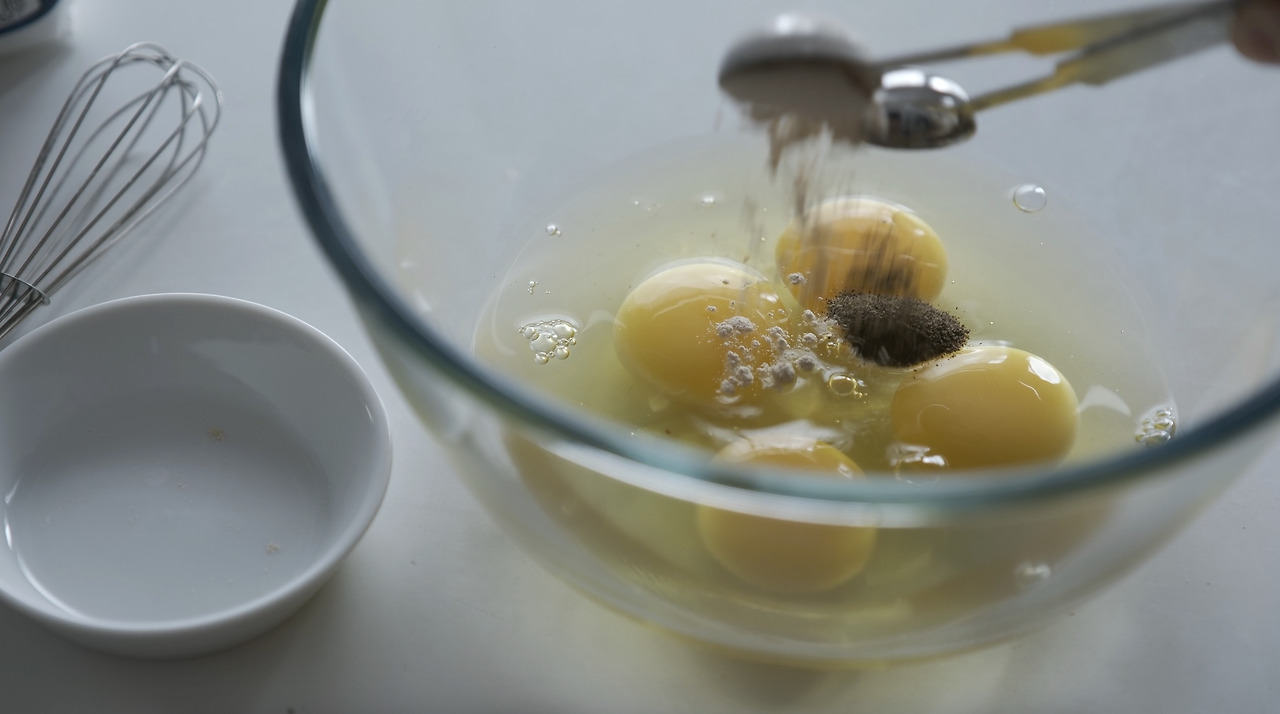 달걀에 후추, 소금, 마늘가루를 넣고 잘 저어줍니다.