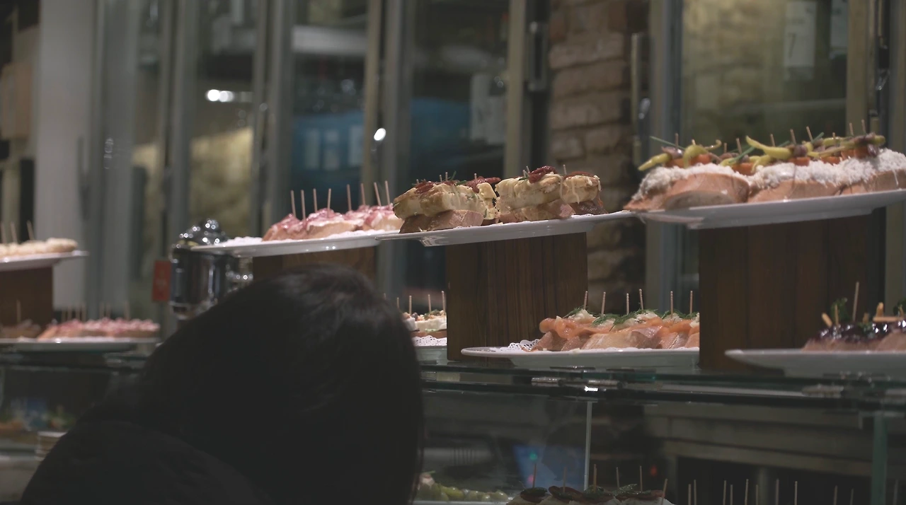 오후 2시가 넘어가면 스페인 골목골목에 위치한 가게들이 하나 둘 문을 열기 시작합니다. 바에 놓이는 핀초스 접시들. 핀초스는 여러 가지 음식에 이쑤시개를 꽂아 만든 음식입니다.