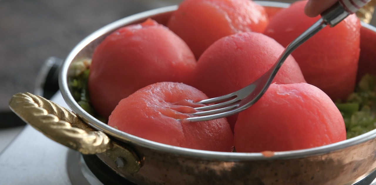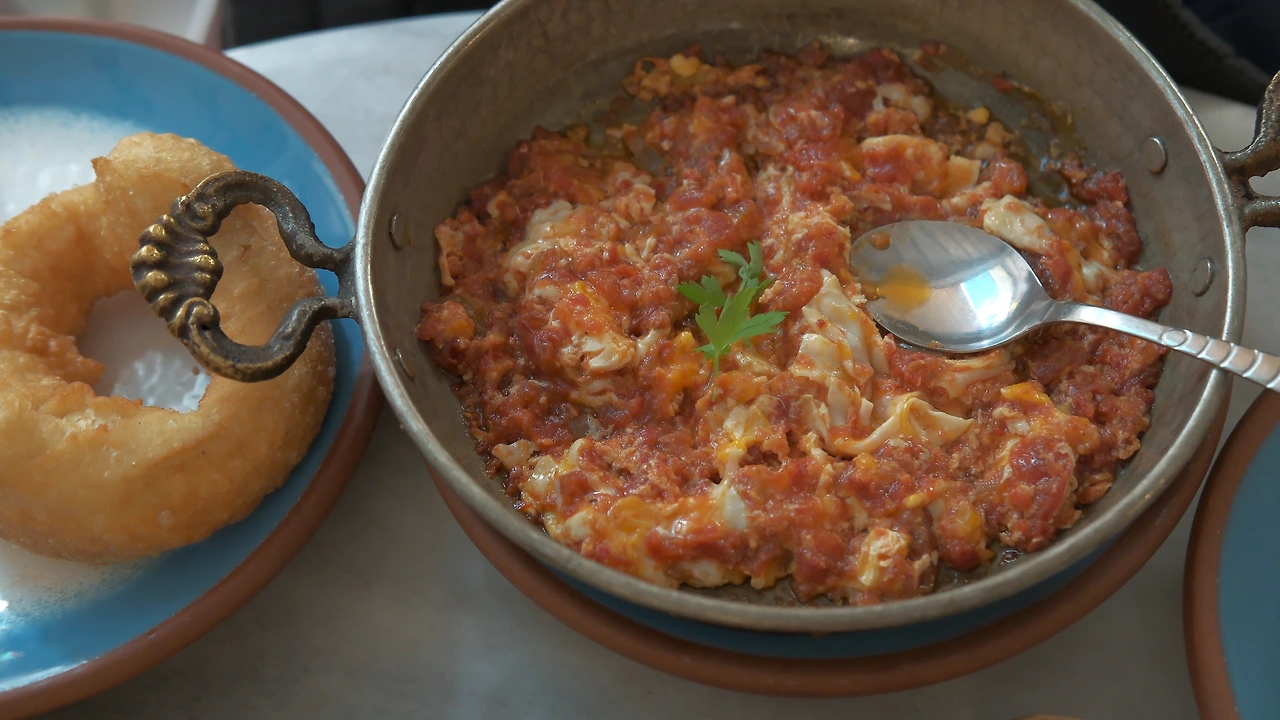 카흐발트에 올라오는 대부분의 음식들은 이미 자연에서 완성된 것들입니다. 신선한 치즈, 잘 익은 야채와 과일. 이에 비하면 메네멘menemen은 꽤 노고가 필요한 요리처럼 보입니다. 하지만 메네멘은 무척 만들기 쉽습니다. 일반적인 토마토달걀볶음과 다른 점이 있다면 버터와 고추가 추가되는 정도.