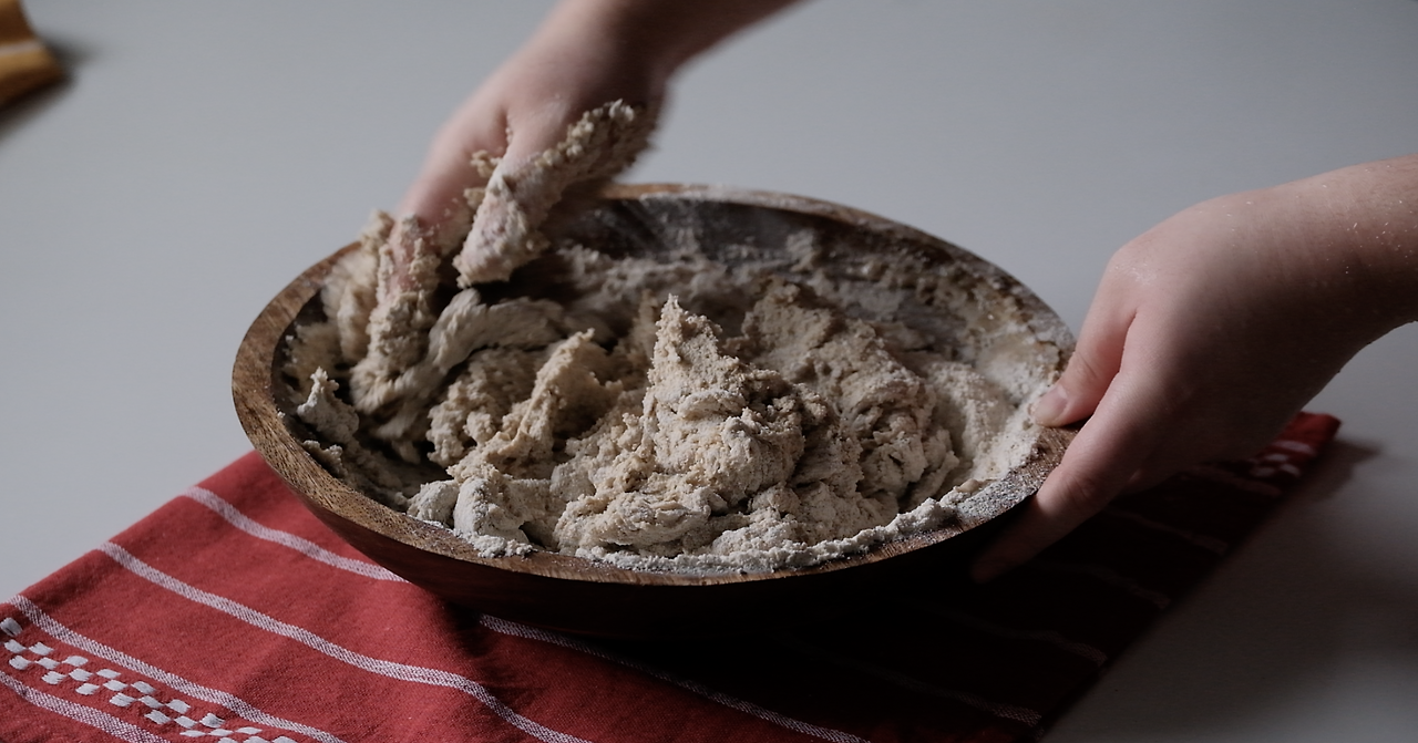 / 치대지 않고 반죽이 한 덩이가 될 때까지만 뭉쳐줍니다.