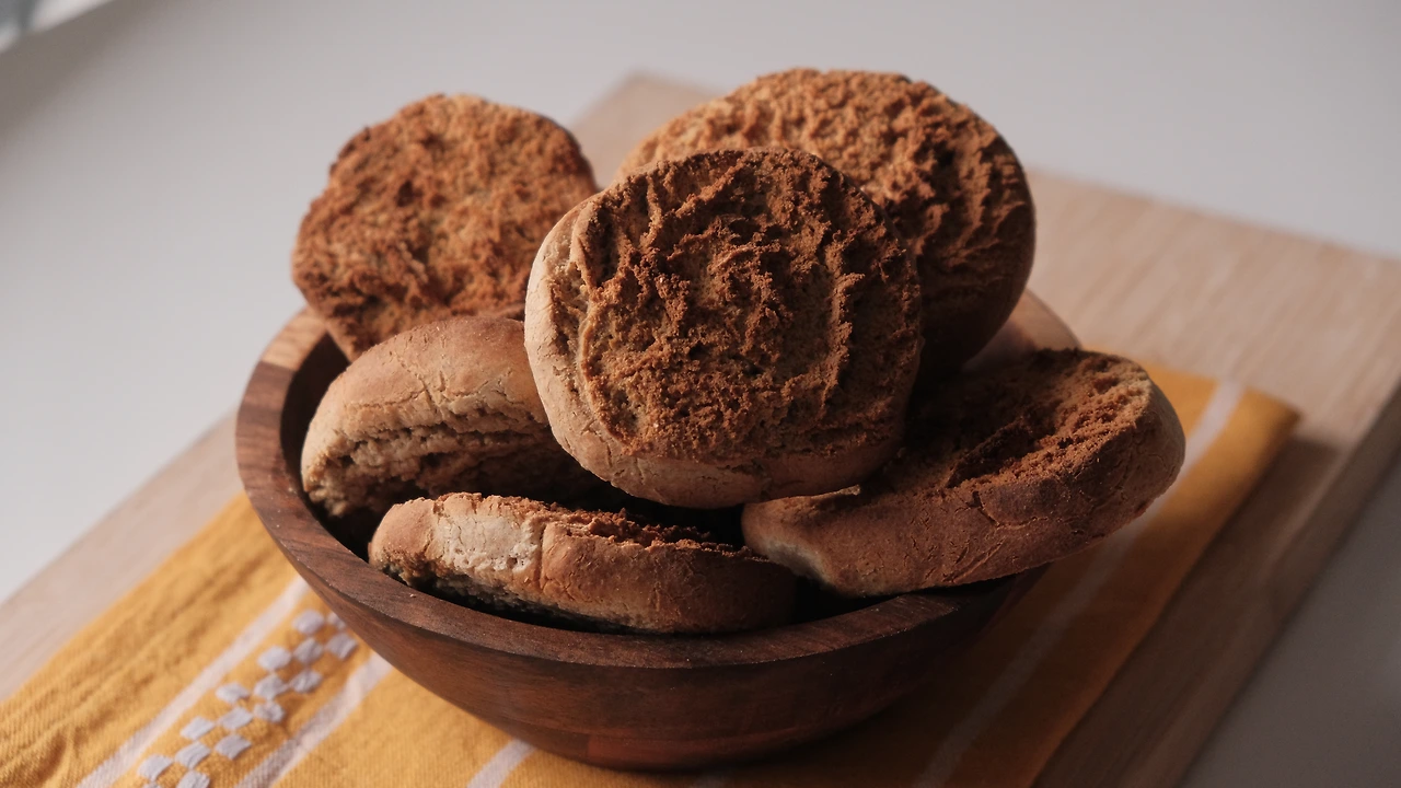 우리에게 러스크는 바게트나 식빵을 이용해 달콤하고 고소하게 재가공된 음식으로 익숙하지만 세상에는 아주 다양한 종류의 러스크들이 존재합니다. 인도, 영국, 독일, 그리스, 이탈리아, 프랑스 등등. 빵을 주식으로 하는 나라 대부분이 딱딱한 빵을 즐기고 이를 다양한 요리에 활용하기도 합니다. 말린 빵을 아침식사로 먹는 그리스 크레타섬에서는 러스크를 만들기 위해 빵을 굽습니다. 팍시마디아 (Paximathia). 통밀가루, 보릿가루 외에도 거칠게 빻아진 보리 껍질을 넣기 때문에 일반적인 러스크보다 훨씬 더 오랫동안 건조함을 유지합니다.