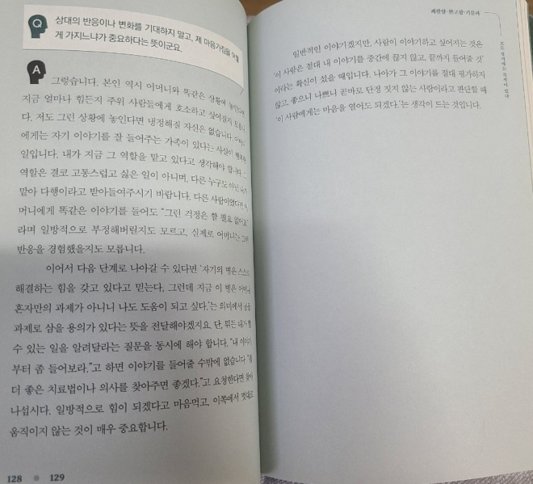 사람이 이야기하고 싶어지는 것은 '이 사람은 절대 내 이야기를 중간에 끊지 않고, 끝까지 들어줄 것'이라는 확신이 섰을 때입니다. 나아가 그 이야기를 절대 평가하지 않고, 좋으니 나쁘니 곧바로 단정 짓지 않는 사람이라고 판단할 때 '이 사람에게는 마음을 열어도 되겠다.'라는 생각이 드는 것입니다.