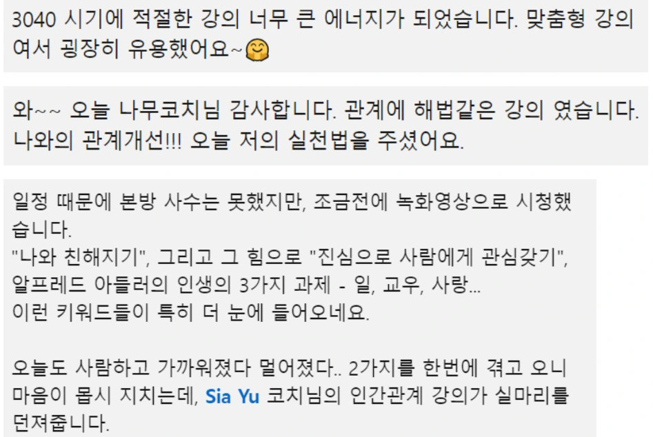 미니 강의 : 3040 인간관계를 지속하기 위한 방법