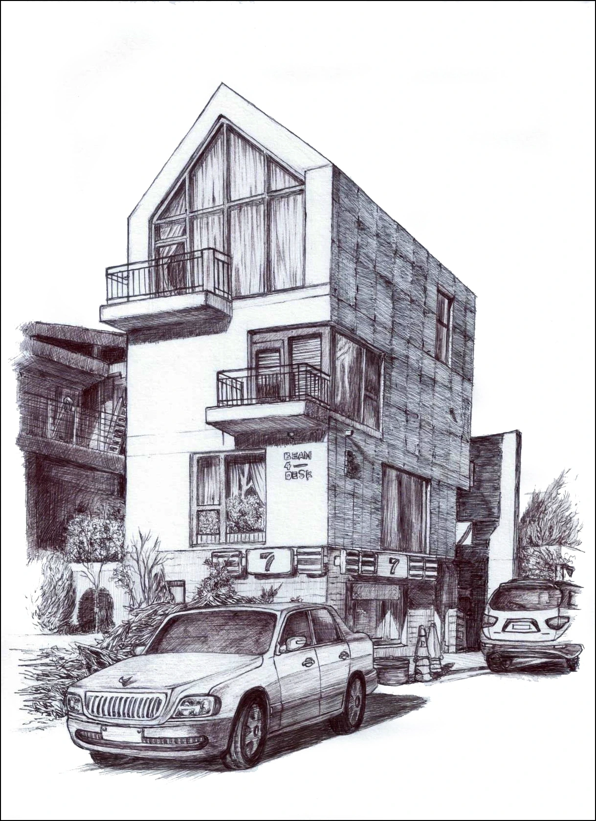 꼭, 피그먼트 펜으로만 그려야 하나? 의문을 품고 강사님께 물었다. 굳이 그럴 필요는 없는데 되도록 펜을 사용하는 것이 좋겠다는 답이 돌아왔다. 펜이라면 볼 펜도 있으니 이번 과제는 이걸로 그려 볼까? 하고 책상 앞에 앉아 또 골몰했다. 피그먼트 펜과 볼펜은 느껴지는 질감 차이가 뚜렷하니 망설여졌다. 어쨌든 한번 손 대면 수정이 불가하니까.