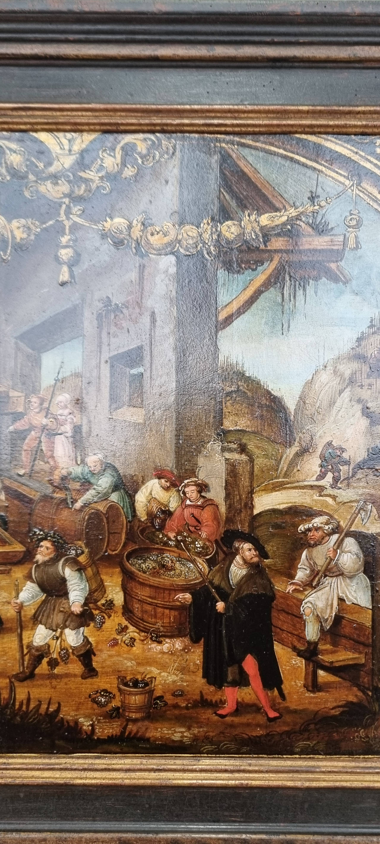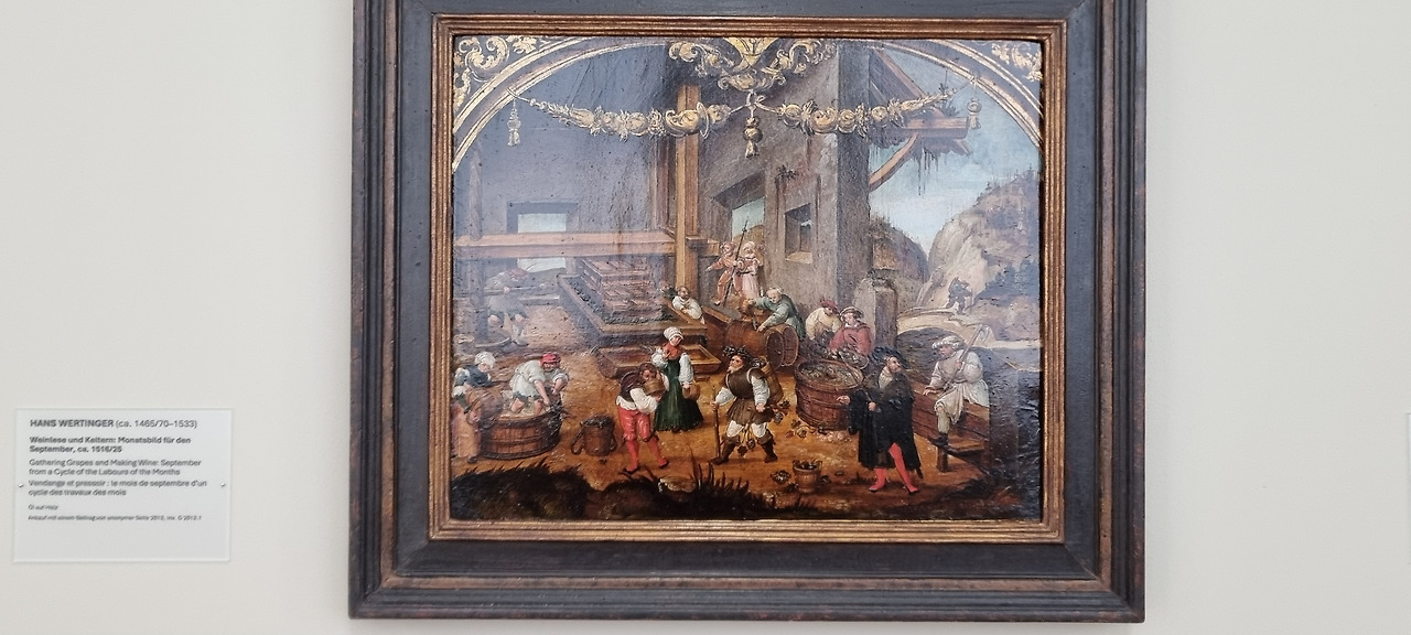 한스 베르팅어(Hans Wertinger)의 ‘포도 수확과 와인 제조(9월)’는 와인 수확철의 분주함을 담고 있습니다. 모두가 바쁘게 일하는데 딱 한 사람만이 이래라저래라 지시만 하고 있어요. 그 모습을 보니 월급쟁이인 제 처지를 자각하게 됩니다. 예나 지금이나, 동양에서나 서양에서나 지시만 하는 사람은 늘 있네요