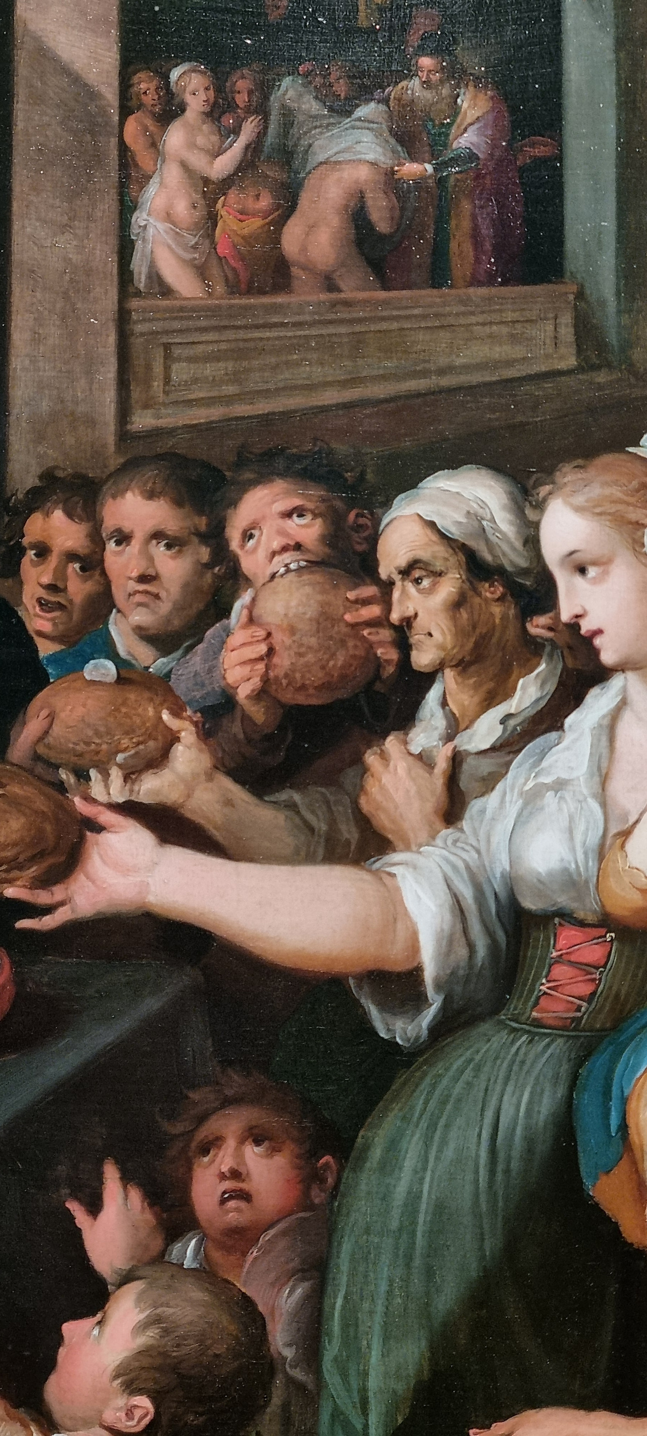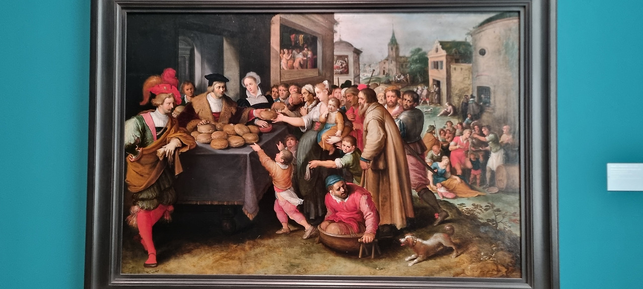 ‘7가지 자비로운 행위(The Seven Works of Mercy)’라는 그림도 인상적입니다. 이 주제는 카라바조(Caravaggio)의 작품이 가장 유명하지만, 아쉽게도 아직까지 직접 보지는 못했습니다. 대신 바젤에서 만난 그림은 전혀 다른 분위기죠. 네덜란드 라익스뮤지엄에 있는 동명의 작품과도 다른 분위기입니다. 바젤 미술관에 있는 이 작품은 바로 프랑스 프랑켄 2세(Frans II Francken)의 그림입니다. 앞선 작품들보다 훨씬 풍속화 같은 느낌이 강한데, 특히 빵을 받아먹는 사람의 표정이 시선을 강탈하네요.