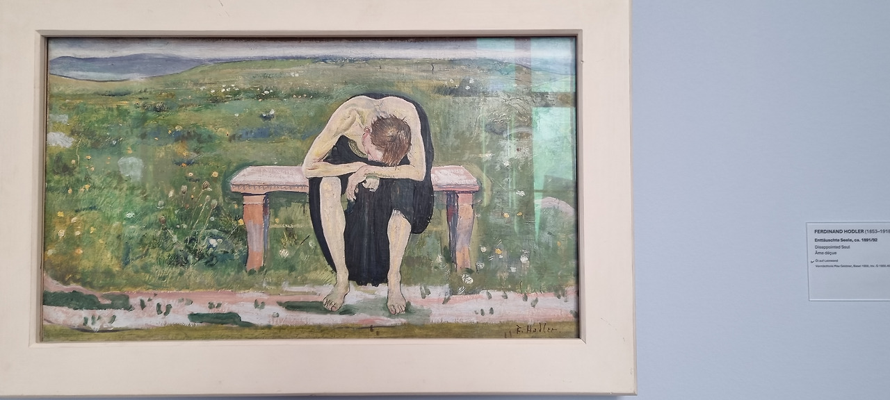 마지막은 그래도 스위스의 국민 화가 페르디난트 호들러(Ferdinand Hodler)의 작품 ‘상심한 영혼(Disappointed Souls)’입니다. 미술관 내 다른 공간에 같은 제목의 두 작품이 걸려 있습니다. 호들러가 불과 1년의 시차를 두고 표현해 낸 노인과 젊은이의 상심은, 그 깊이와 울림이 전혀 다른 모습으로 다가옵니다. 노년의 상심은 배경이 지극히 현실적이에요. 표정도 다 드러나 있구요. 청년의 상심 배경은 꽃밭이네요. 찬란하고 푸르른 청년의 삶이어도 보여주지 않은 표정과 같이 불안한 미래로 상심하고 있는 것만 같아요.