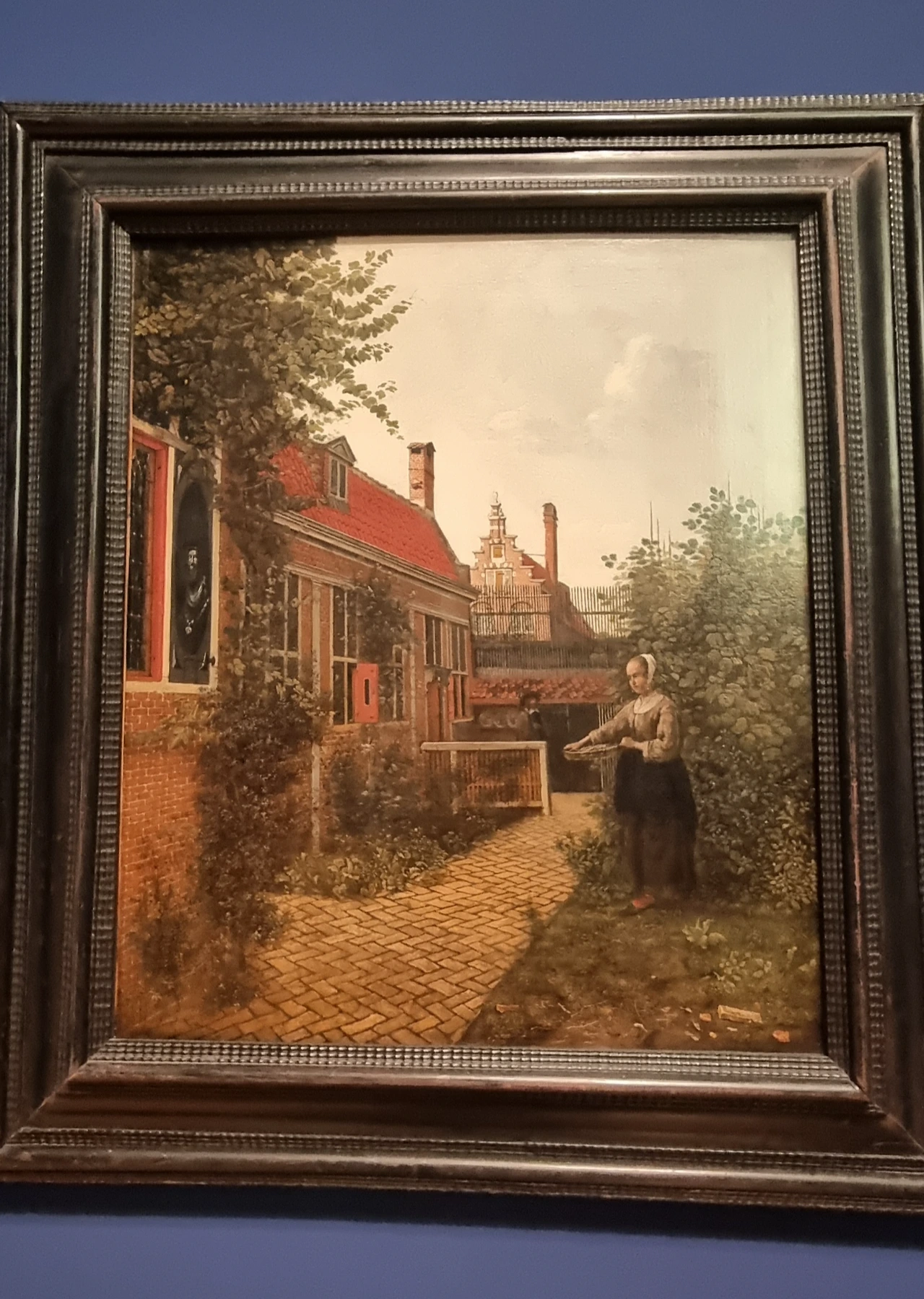 요하네스 베르메르(Johannes Vermeer)와 화법이 매우 비슷해서 착각하기 쉬운데요, 두 사람 모두 17세기 네덜란드 델프트에서 활동하며 풍속화를 그린 거장들입니다. 헤이그의 마우리츠하위스(Mauritshuis)에서 그의 작품을 처음 봤을 때도 베르메르의 것인 줄 알았을 정도니까요. 굳이 구분하자면, 이곳에서 만난 그림처럼 피터르 더 호흐는 방 안과 밖(열린 문이나 복도)을 연결하는 일상을 주로 그렸고, 베르메르는 조금 더 정적인 실내의 빛에 집중했다는 차이가 있습니다.