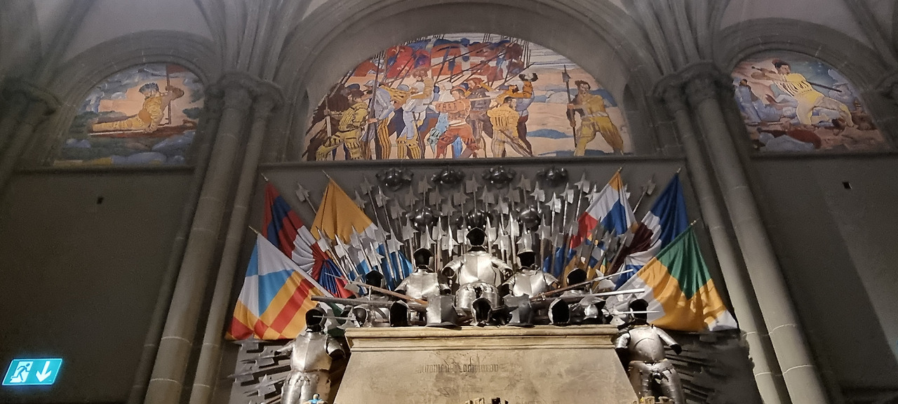 명예의 전당(Hall of Fame)에는 페르디난드 호들러(Ferdinand Hodler)의 프레스코화가 있어요. <마리냐노에서의 퇴각(Retreat from Marignano)>인데요, 제작 당시 너무 현대적이라는 이유로 사회적으로도 큰 논쟁이 있었다고 하네요.