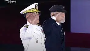 유해가 비행기에서 내려오는 동안 가수 윤도현은 '늙은 군인의 노래'를 구슬프게 불러 자칫 지루해졌을 행사 분위기를 숙연하게 했다. 특히 인상적인 장면은 각 군의 보고를 받는 예식이 있었는데, 각군의 참모총장과 예비역 한 명이 나란히 경례를 받았다. 육군 다음으로 해군 차례가 되자, 해군 참모총장과 흰 수염과 다소 거동이 불편한 노병이 지팡이를 짚고 힘겹게 무대에 올랐다. 태극기와 해군기가 앞으로 나오자 힘차게 거수경례를 했다. 그리고 ‘해군가’가 울려 퍼졌다.