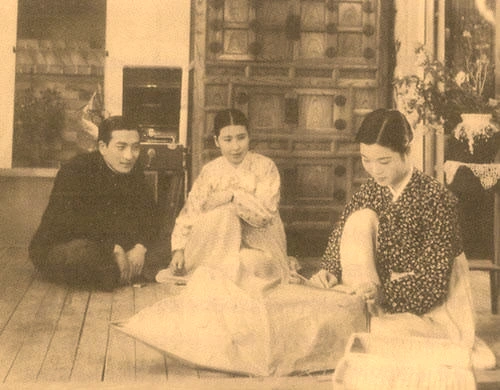 <사진 위> 1936년 7월 극단 청춘좌에 의해 동양극장에서 올린 '사랑에 속고 돈에 울고'의 스탭과 출연진